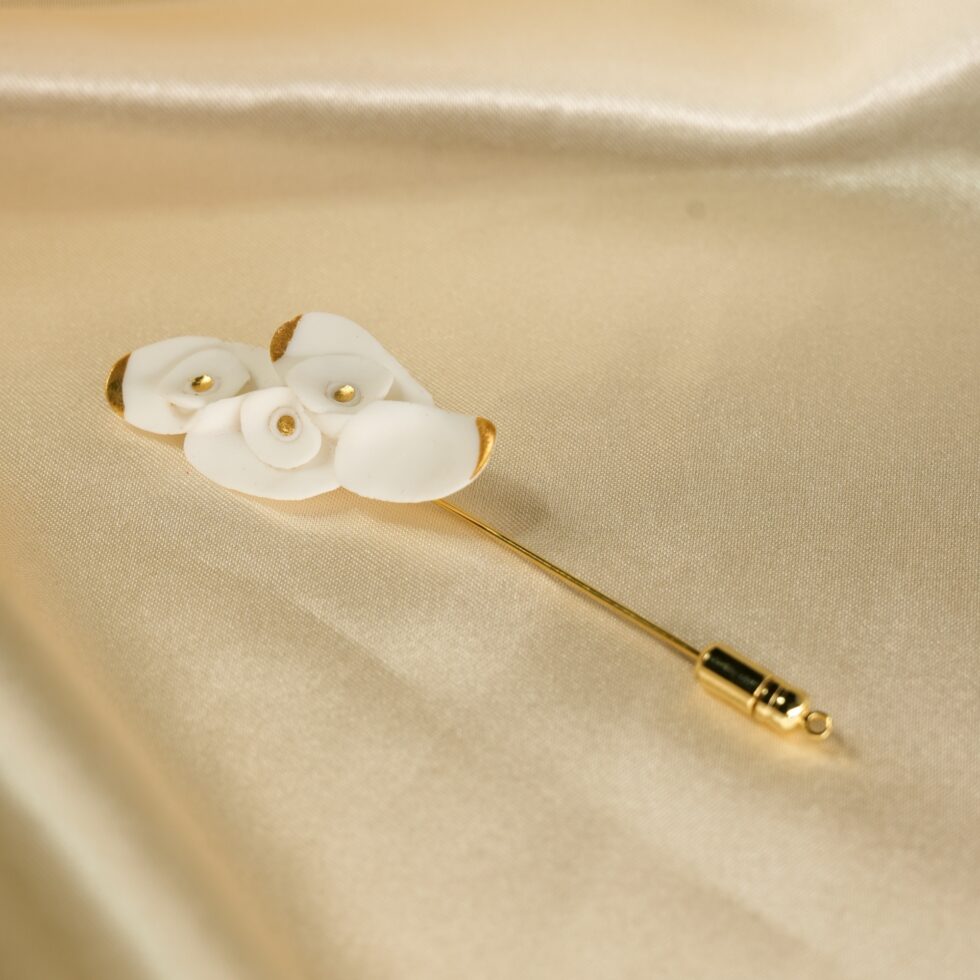 Handcrafted White Magnolia Ceramic Lapel Pin
