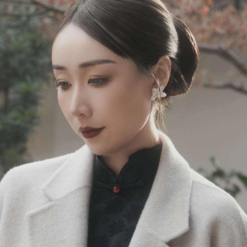 Product Name: Handcrafted White Violet Ceramic Carved Stud Earrings, 925 Sterling Silver