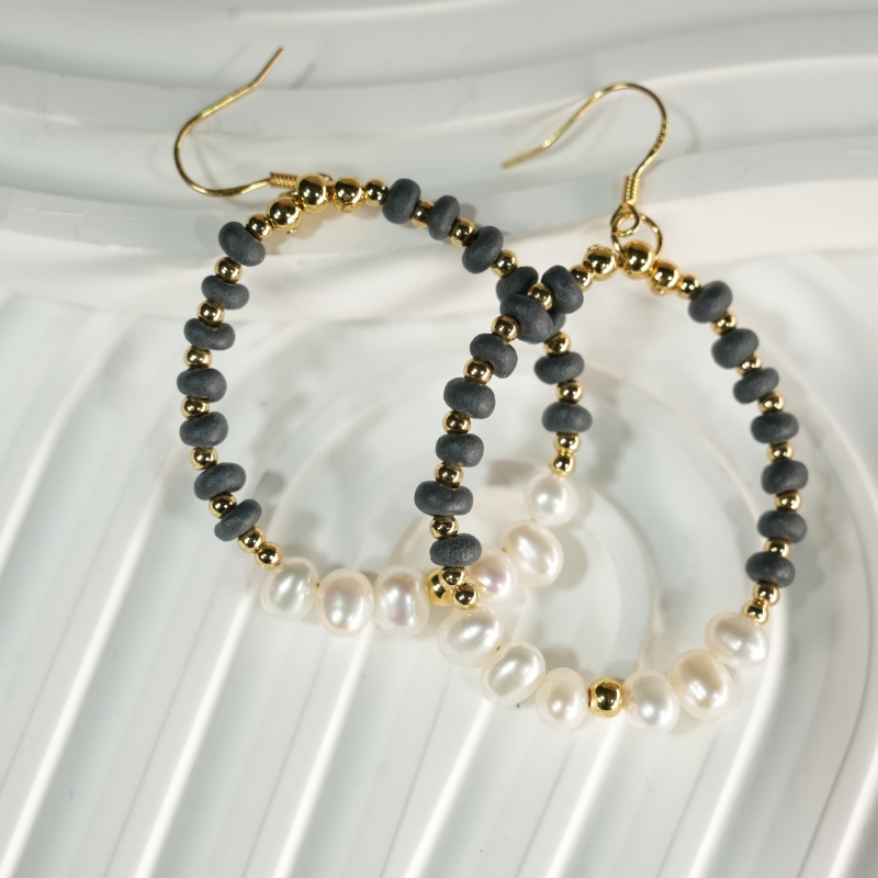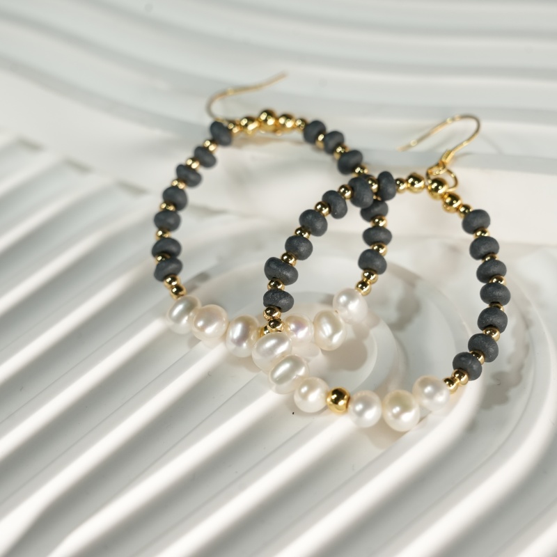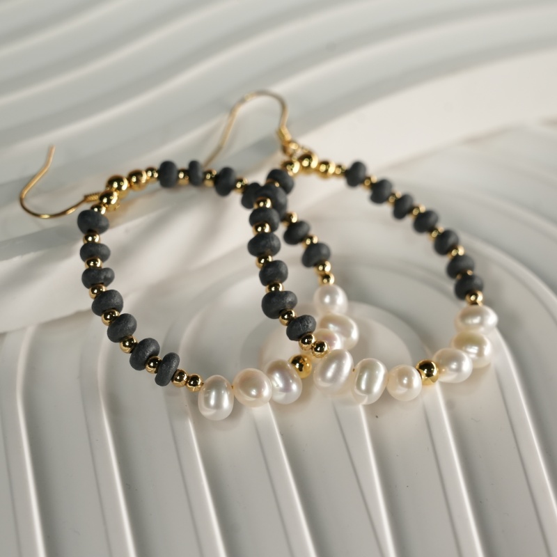 Elevate your everyday style with these handcrafted beaded hoops, featuring genuine freshwater pearls, matte black ceramic beads, and 14K gold filled accents. Hypoallergenic, tarnish-resistant, and universally flattering, these earrings are the perfect blend of boho chic and timeless elegance. Ideal for gifting or personal wear.