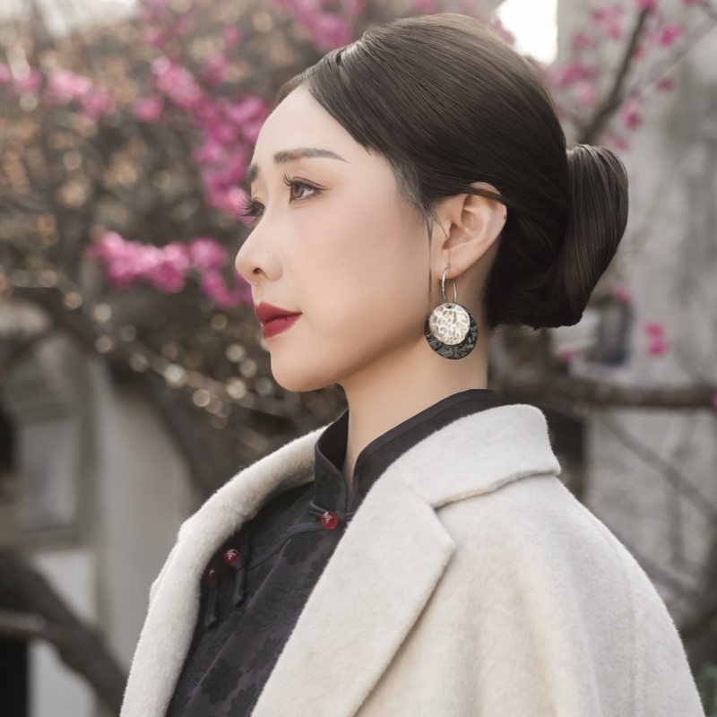 - Product Name: Hammered Double Disc Ceramic Earrings, 925 Sterling Silver